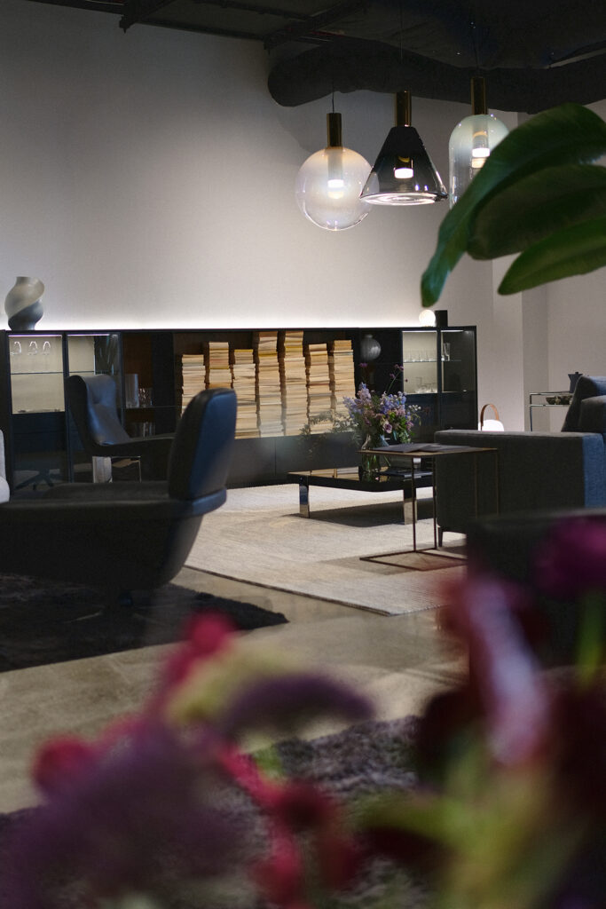 09 MR. showroom view featuring Poliform Day System with furnishings & rug by Minotti